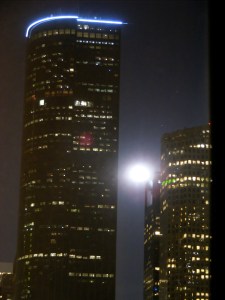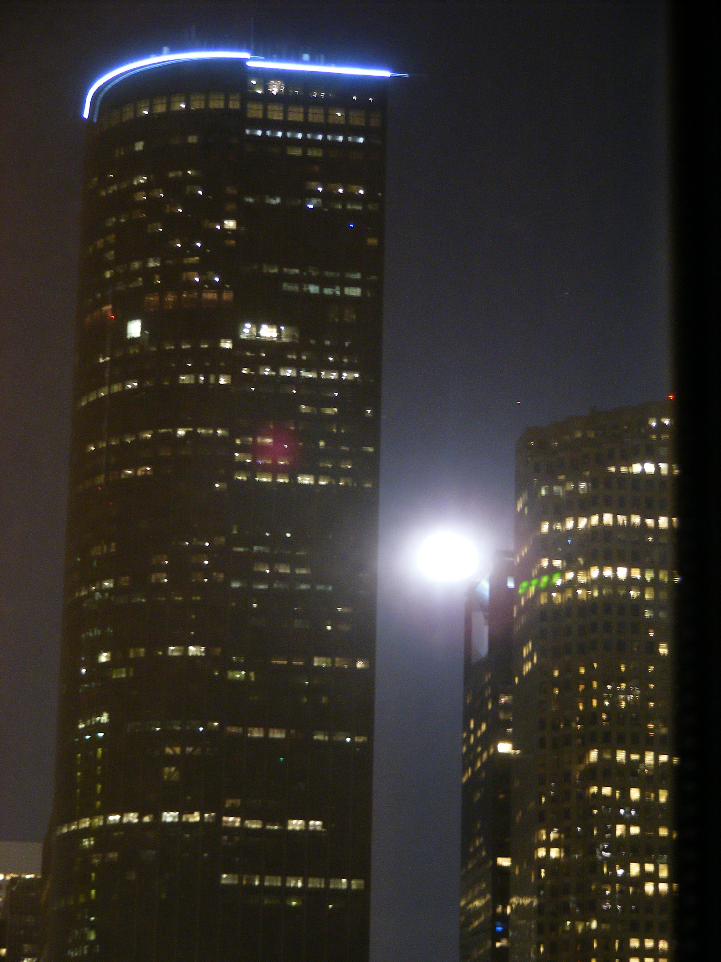 That’s the city lights from our living room windows, with the moon rising. Cheers, Dee