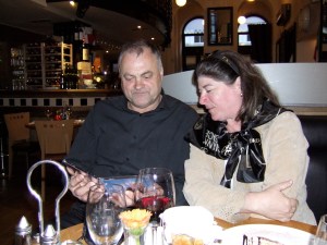 (This photo was supposed to be in Interesting People above. John is considerably younger than this gentleman and is an interesting person in his own right, just not this person. The photo is of Rocco, owner of our favorite neighborhood restaurant downtown Glasgow, Piazza Italia, just off George’s Square. This was our going away party. Rocco gave us mini babas au rhum in limoncello, and we gave him my favorite CD, Frank Sinatra’s Come Fly With Me.)