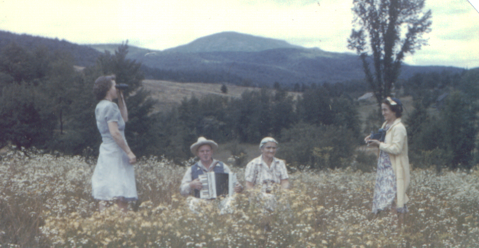 Here’s one. I was looking for an old family photo. How about this one? It was taken in the Adirondacks with Aunt Betty, my grandfather, great-grandmother Cunigunde and grandmother. Anyone care to sing along to “The Hills Are Alive…”
