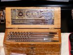 This should show the entire set, which he photographed last night (right), the augur bit box (that I’ve absconded with and it sits on the mantel right across from my desk). I could care less about the bits, I just like the box. And finally, the eggbeater (left) that started out old and creaky and now that he spent about three hours on it, it works like a charm.