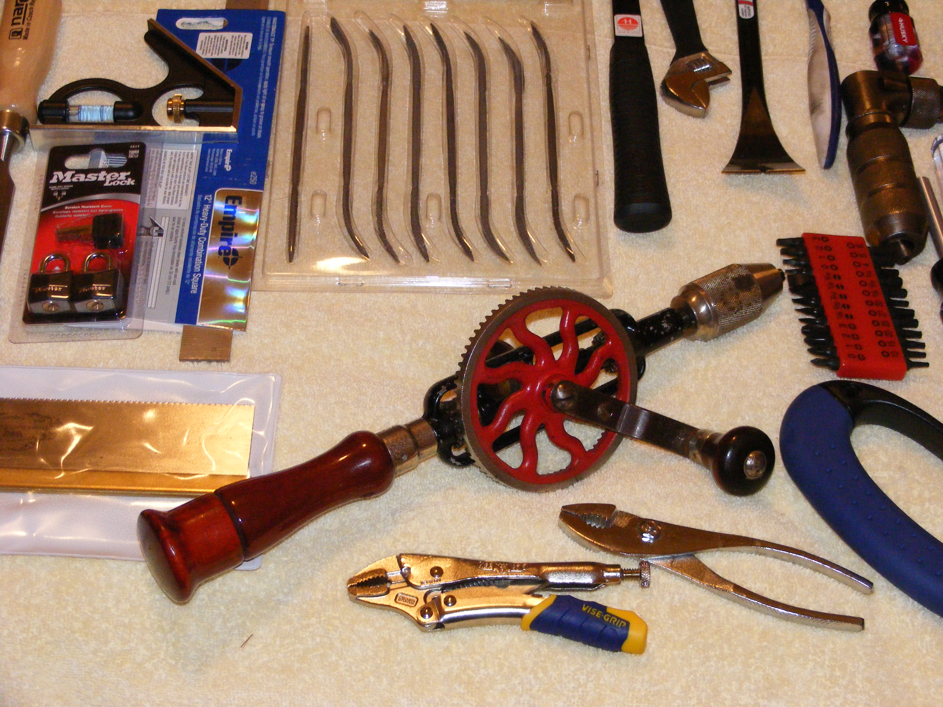 The “eggbeater.” I remember it well. My sister and I used to drill. All the drill bits are in the handle. Husband Jim spent hours reconditioning this piece, that he got from a collector near the town where I was born from a guy who worked at the same small place I did in the same year 3,000 miles away. What a gorgeous tool. Dee
